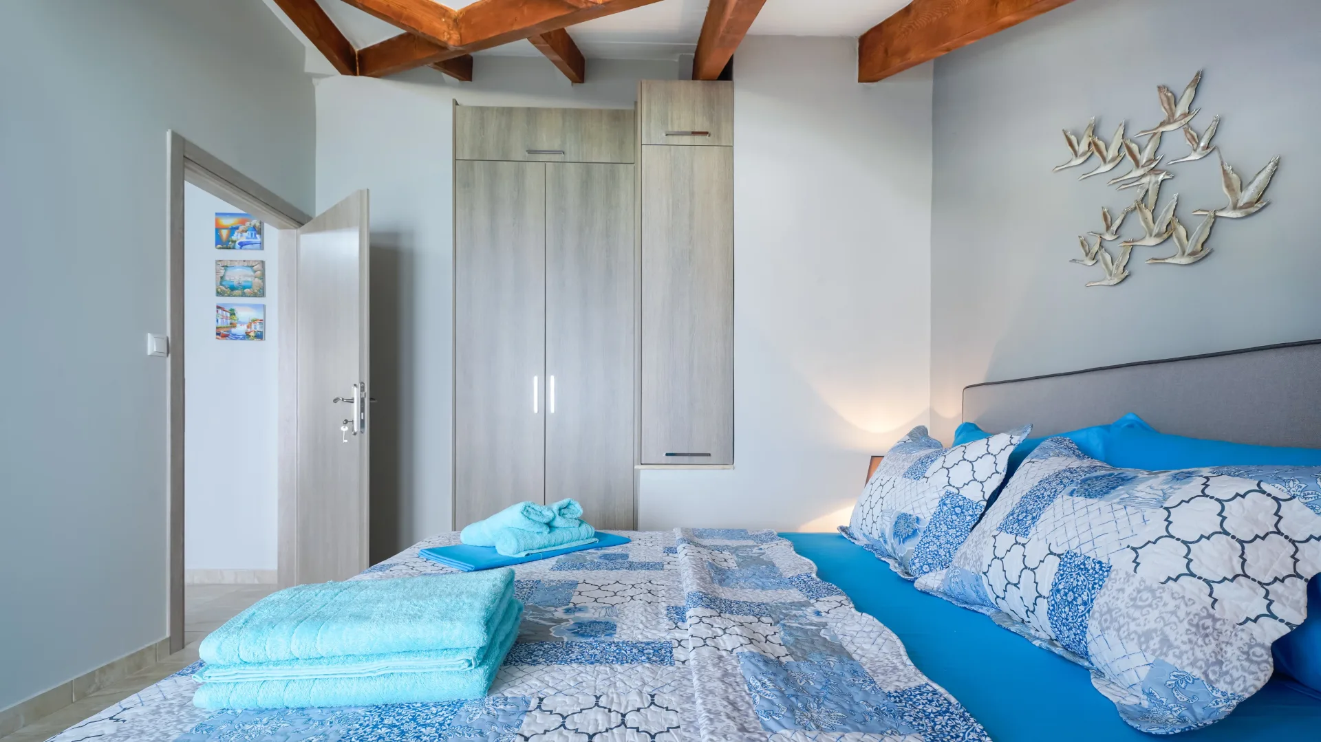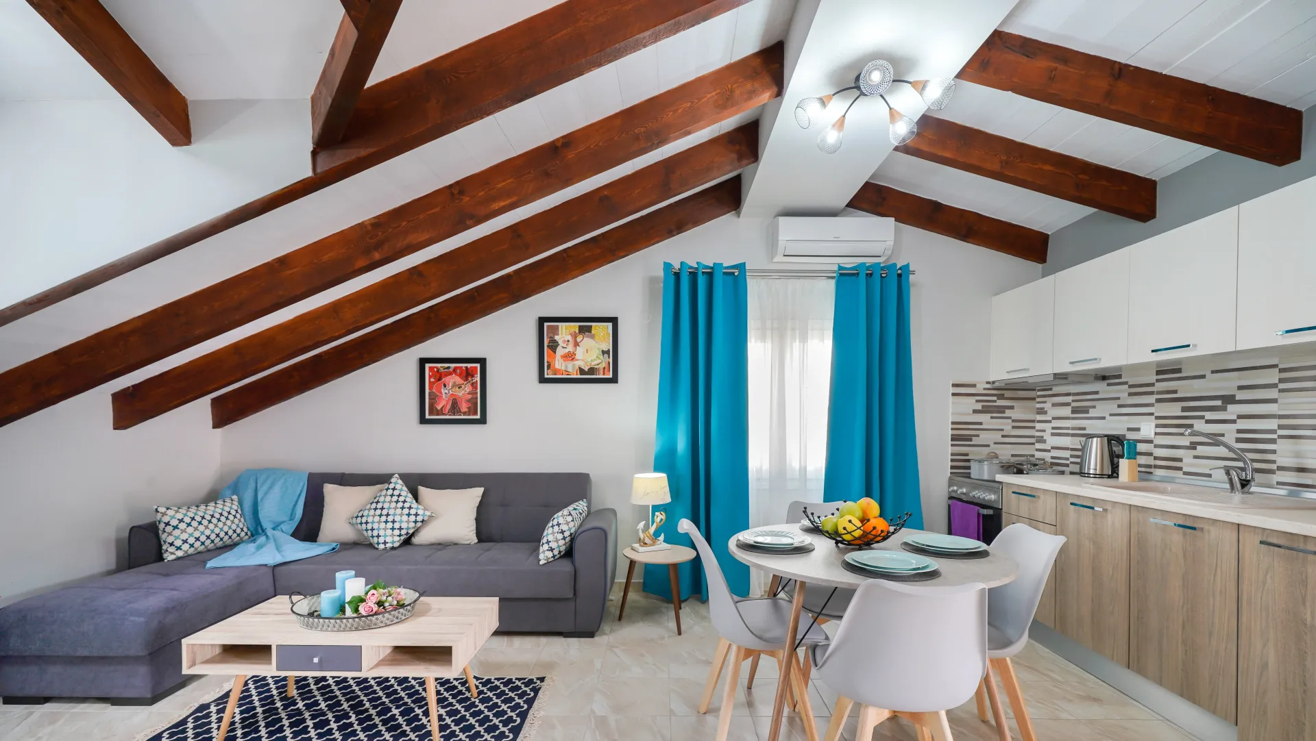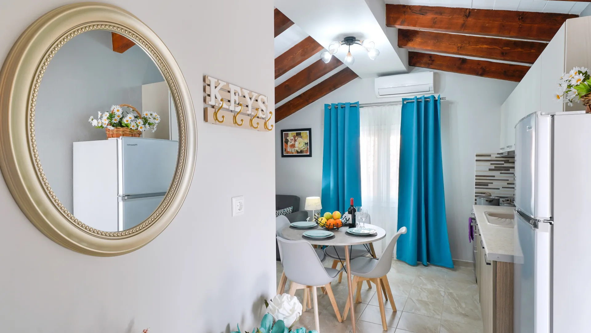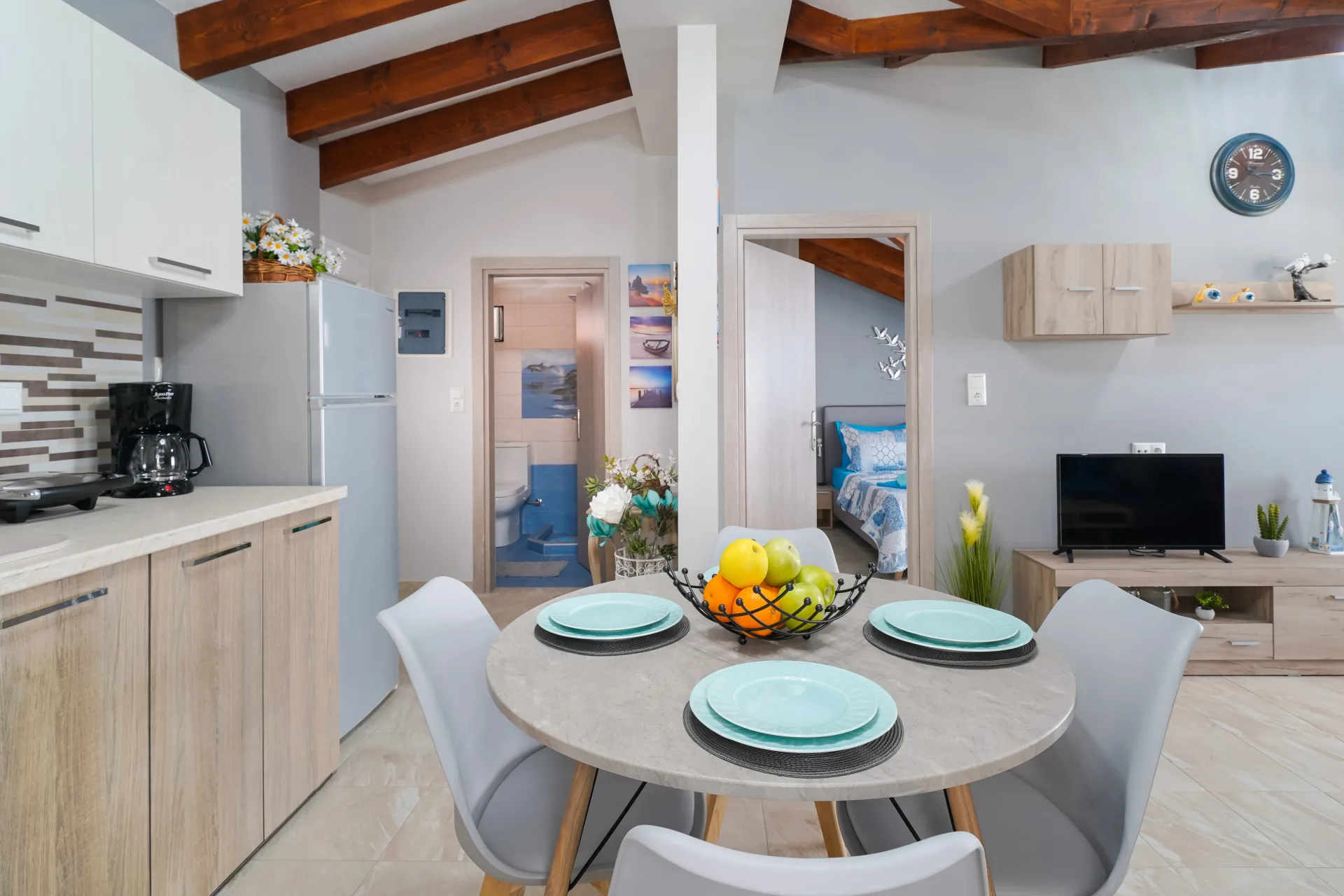 First-floor apartment just across the street from the beach, in the centre of Skala Maries.