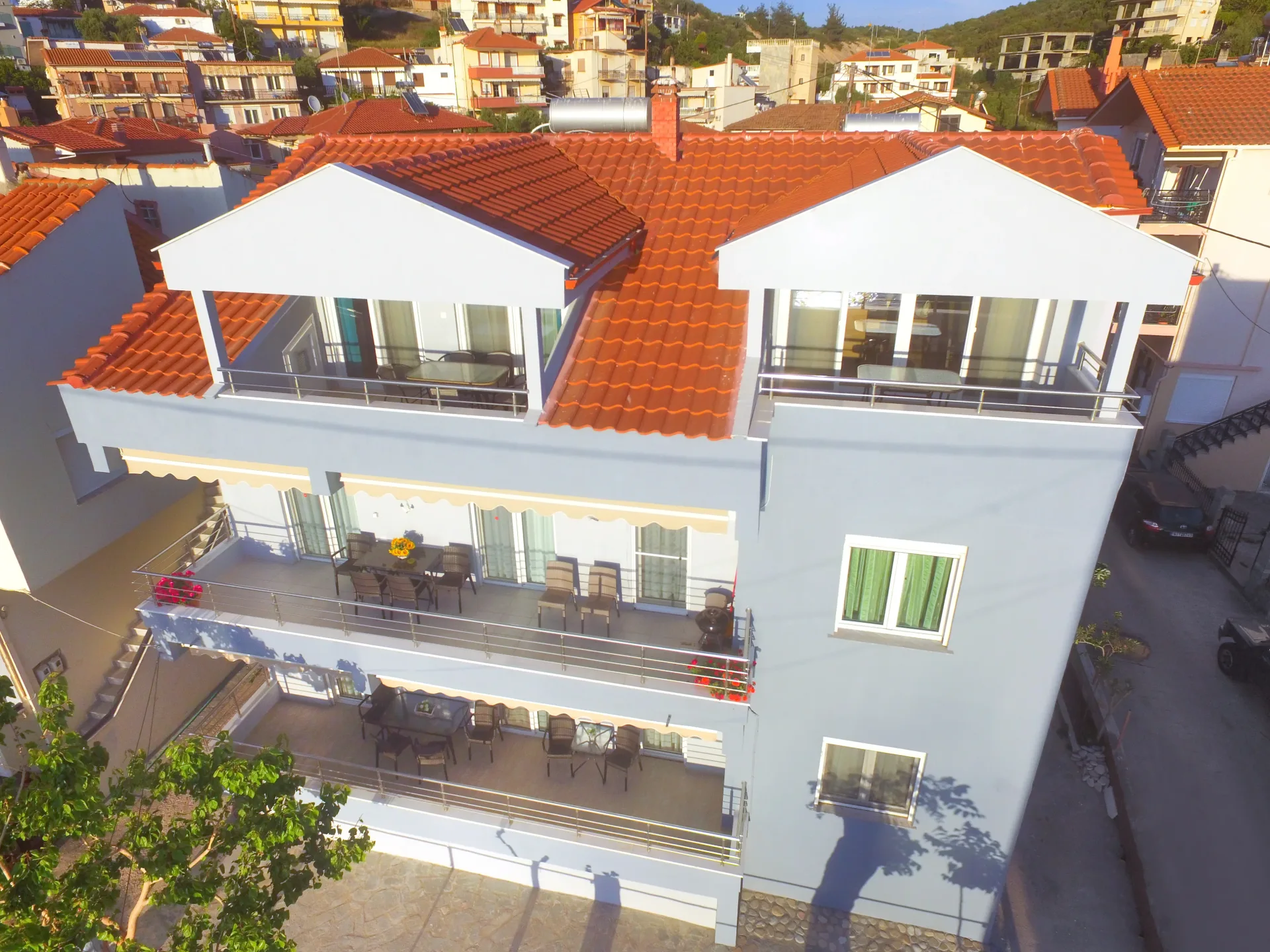 The balcony looks straight out to the sea and the Holy Mountain of Agio Oros